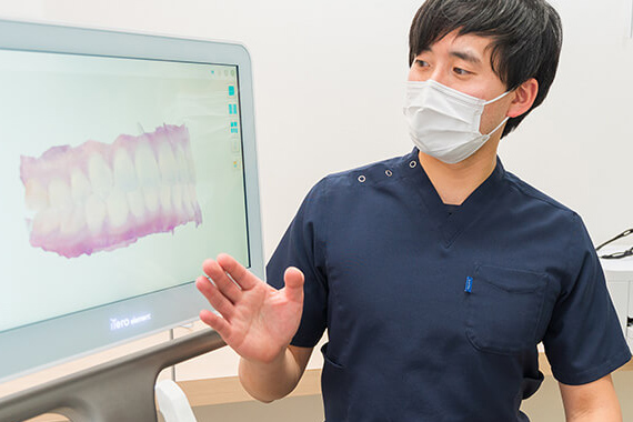 当院では、安心して治療を受けていただけるよう、じっくりと時間をかけたカウンセリングを行っています。症状やお悩みを丁寧にお伺いし、治療の選択肢をご提示。無理に進めるのではなく、検討期間を設けたうえで患者さまご自身に納得いただける治療計画をご提案します。矯正やインプラントなど大きな決断を伴う治療も、不安を解消しながら安心して進めていただけます。